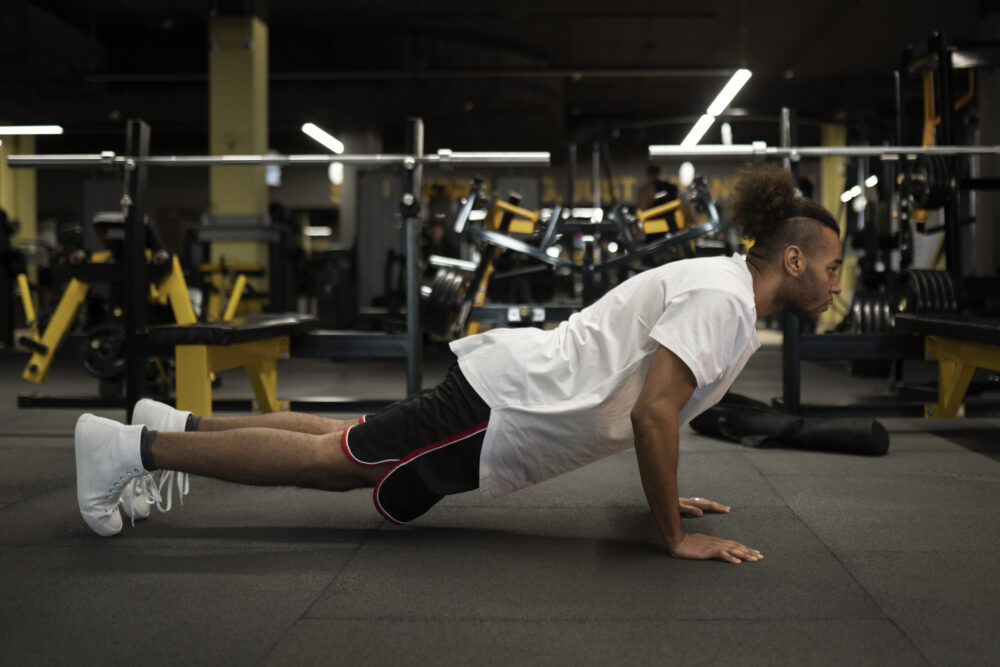 自重スクワットは、下半身を鍛える自重筋トレの代表的な種目である。直立した状態から膝を曲げ、腰が太ももと平行かそれより低い位置までしゃがみ、また元の位置に戻る。筋肉に効かせるときにはゆっくりとした動作や停止する時間を入れるが、タバタで行うときは素早く、しかも休みなく行わなくてはいけない。筆者の実験では、毎ラウンド15回のペースを最後まで保つことができた。